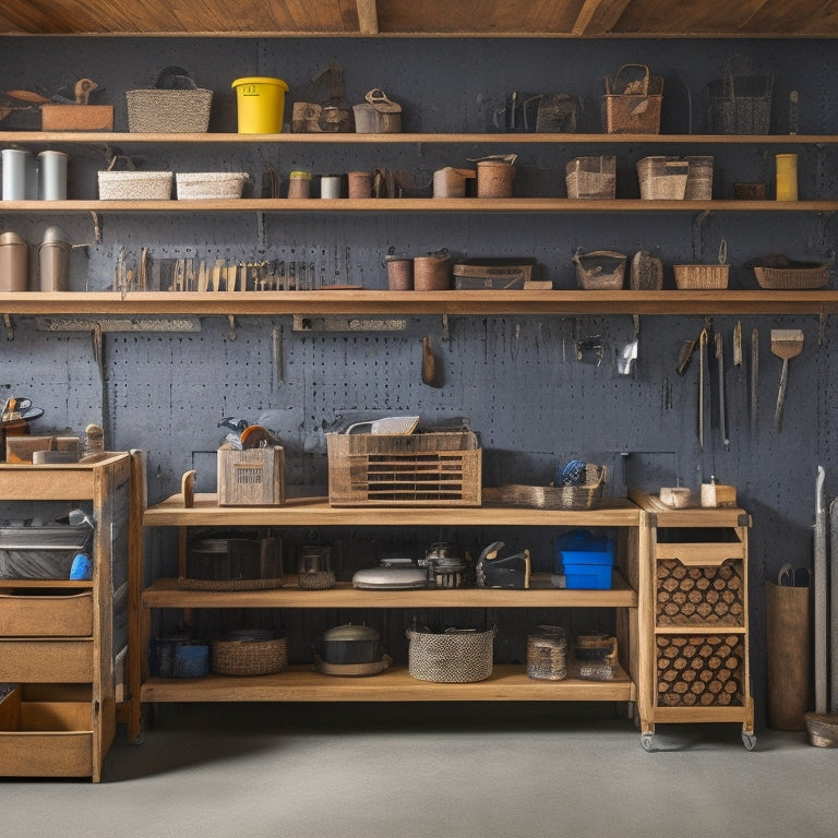 You can also repurpose old pallets as shelves or workstations, adding hidden hooks to hang items like cords, hoses, or accessories. By repurposing everyday items, you'll not only save money but also add a touch of personality to your garage.