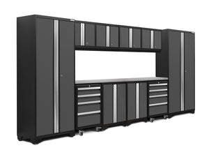 Product Features:- 2 Multi-Use Lockers, 4 Wall Cabinets, 2 Base Cabinets, 2 Rolling Tool Cabinets and two 48 in. Stainless Steel Worktops